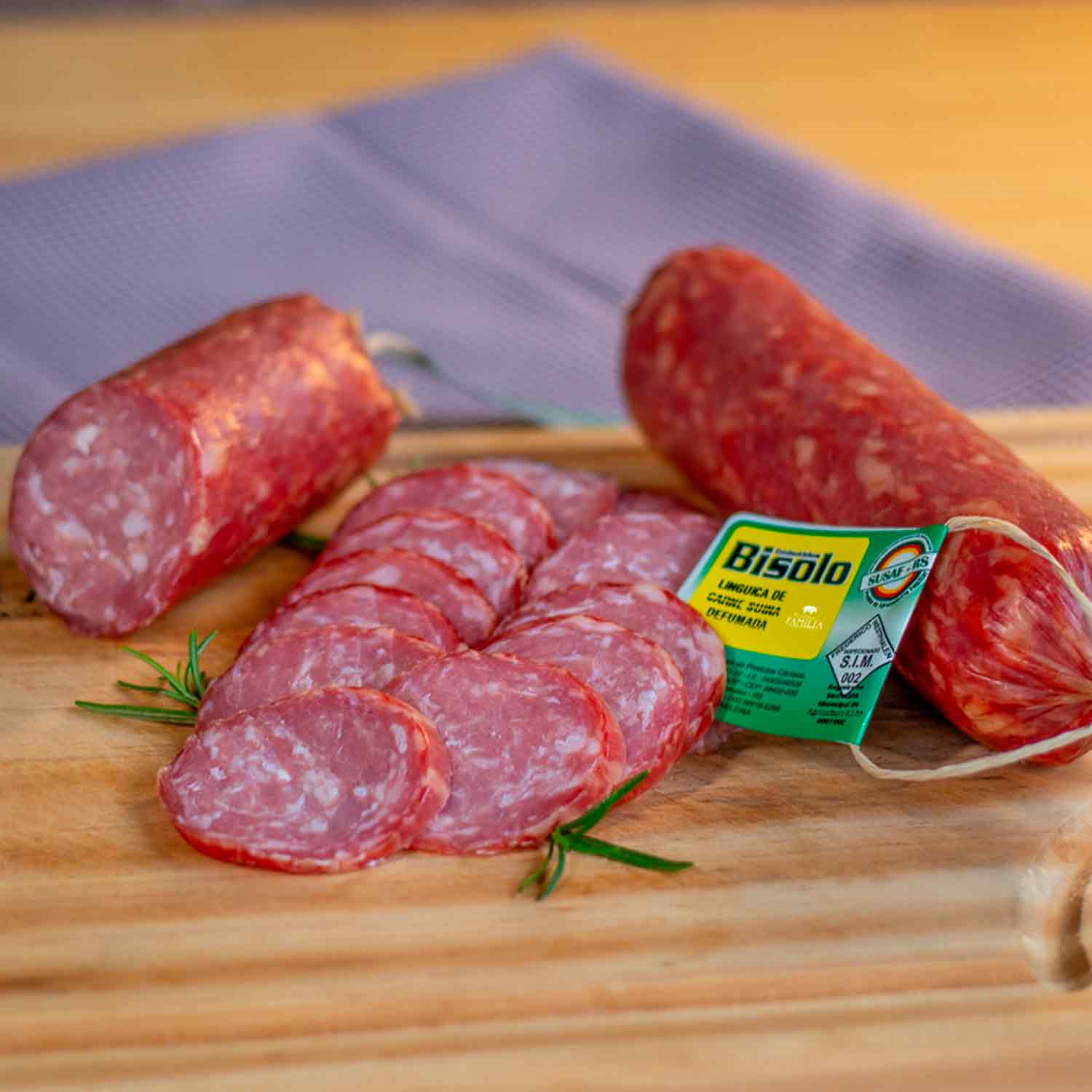 Nossa linguiça de carne suína defumada possui uma textura suculenta e saborosa. Seu processo de defumação é o que agrega à linguiça o aroma e sabor diferenciados á carne. Pronta para o consumo, podendo também ser utilizada em diversas outras receitas criativas, como molhos e risotos.
